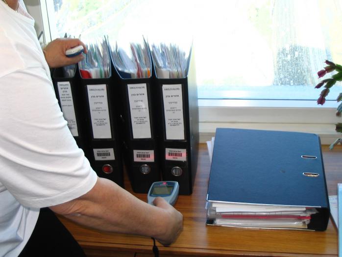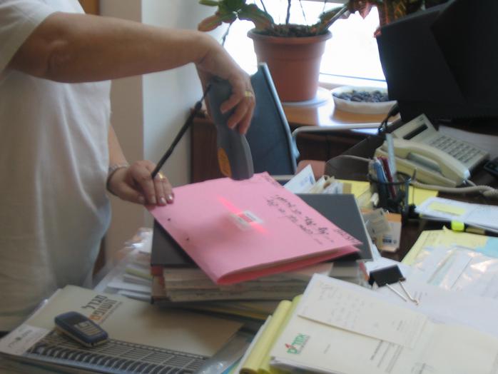 - שיוך מדבקות לתיקים תוך שימוש בקורא ברקוד