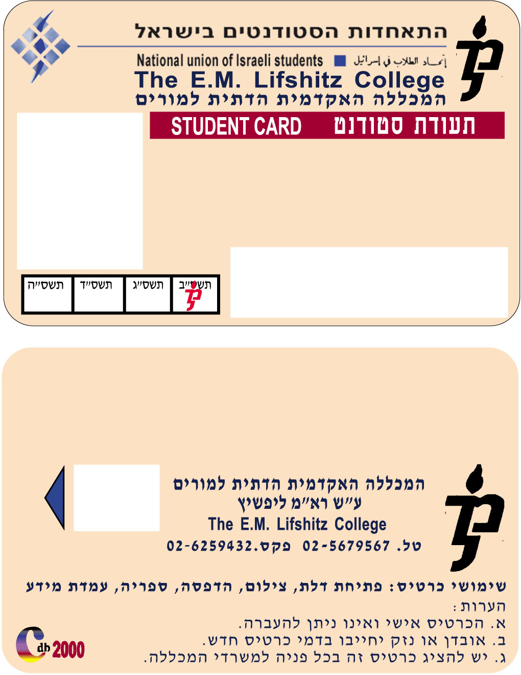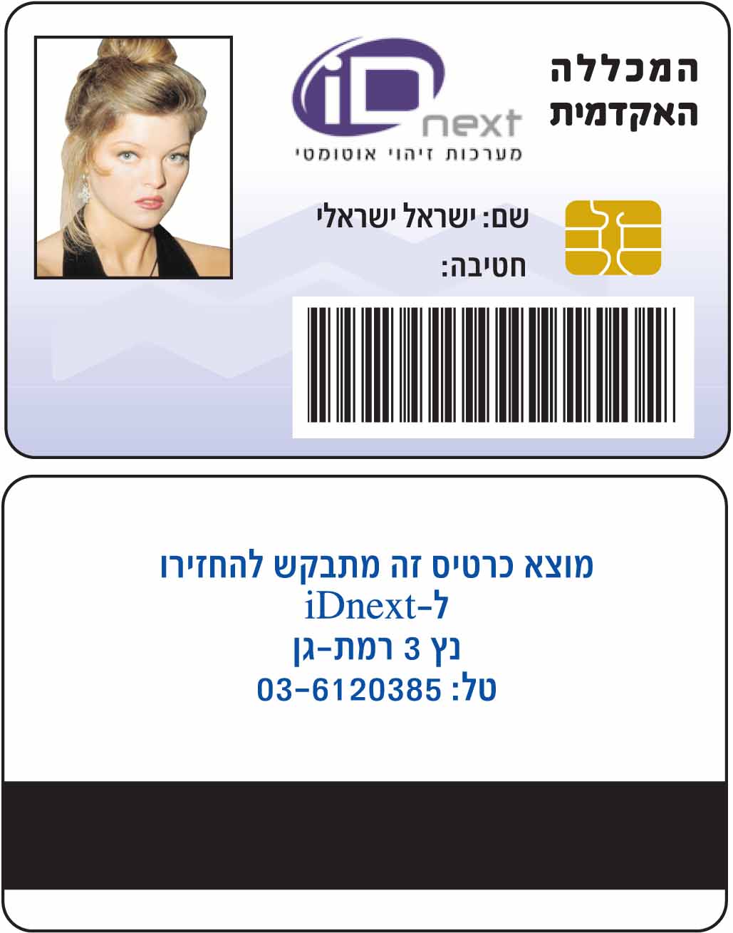 ניתן להפיק את הכרטיס עם ברקוד, לוגו, תמונה שעות פעילות, פס מגנטי ועוד...